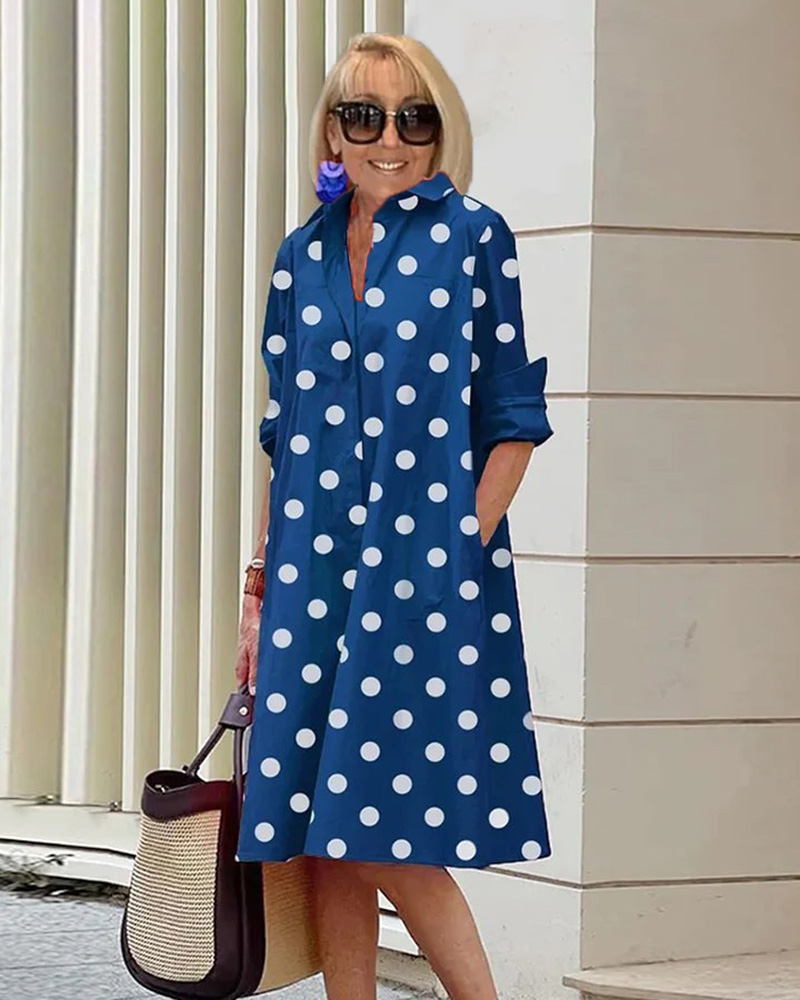 Holiday Bohemian Maxi DressDot Printed Mid-Length Long Sleeve Shirt Dress for Women