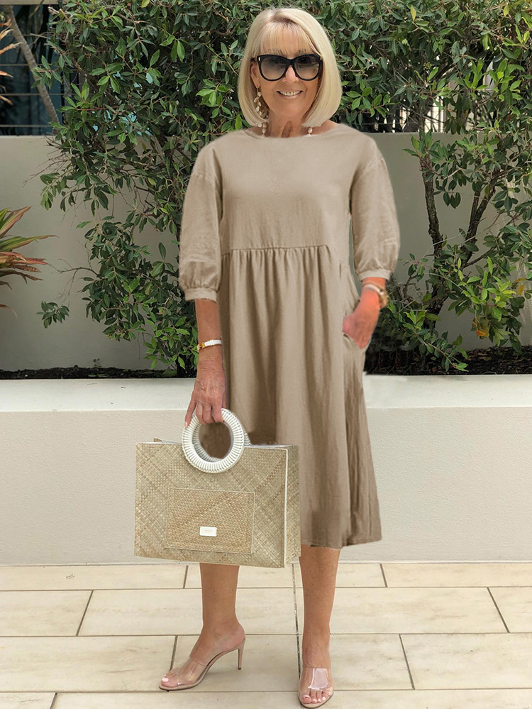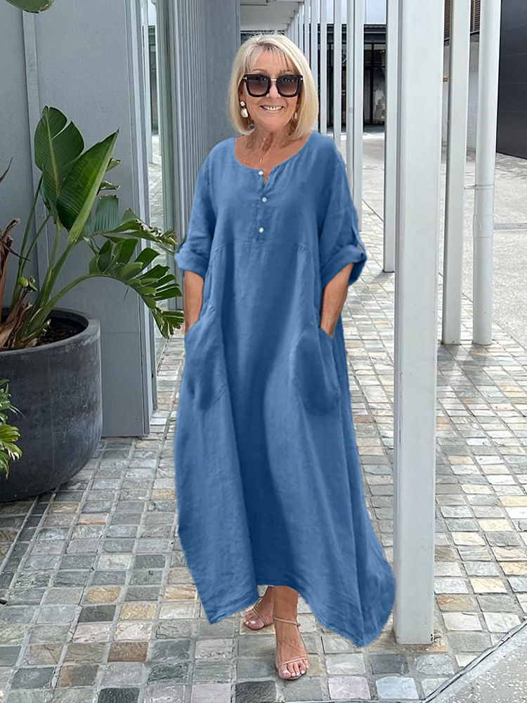 Casual Cotton and Linen Loose Pockets Dress
