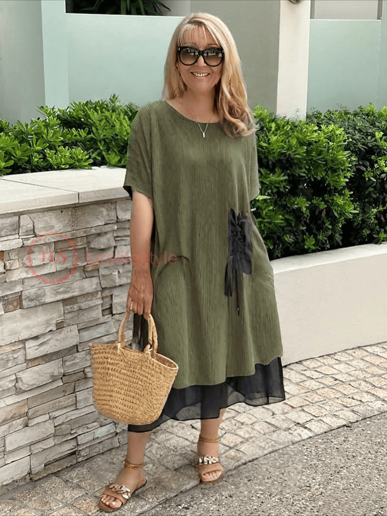 Luxurious Crew Neck Dress - Delicate Layered Trim, Short Sleeve, Elegant Design for a Sophisticated Look - Perfect for Spring and Summer, Womens Clothing