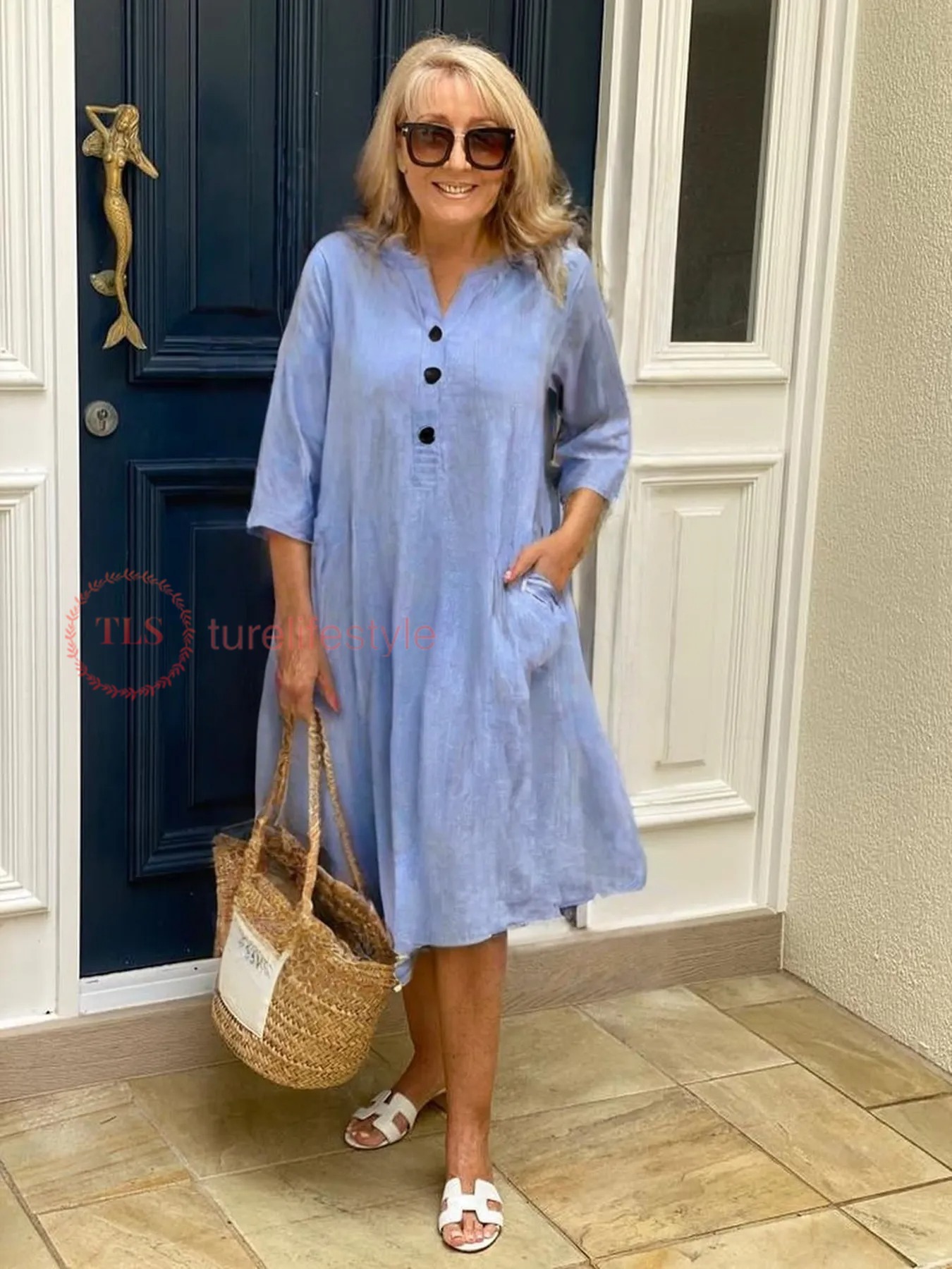 Cotton and Linen A-shaped Skirt Pocket Dress