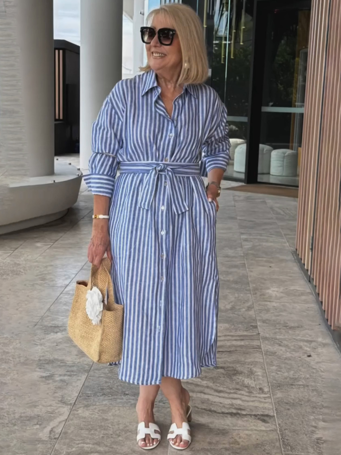 Classic Regular Striped Cardigan Shirt Dress Waist Rope Casual Everyday Skirt