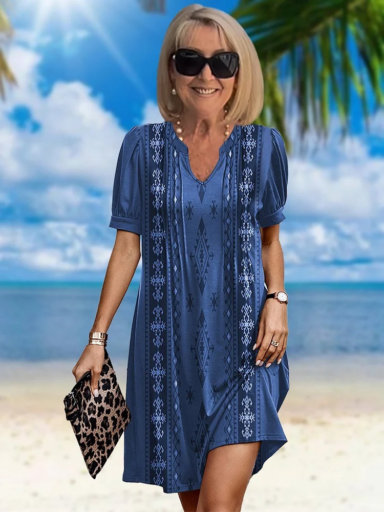 Casual Loose Splicing V-neck Short-sleeved Dress for Women