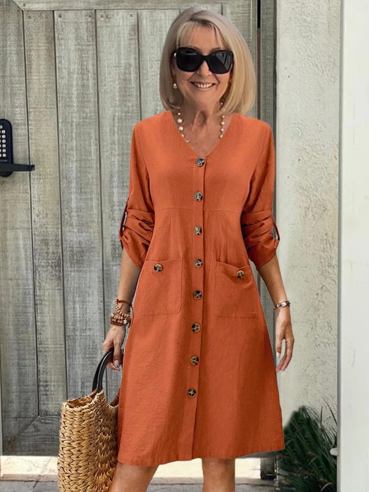 Solid Color Loose Non-Elastic Cotton and Linen Dress