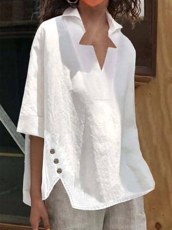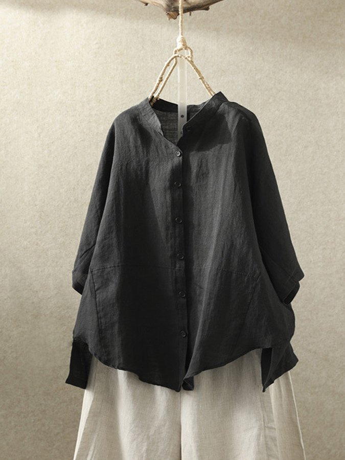 Women's Solid Color Cotton And Linen Casual Shirt