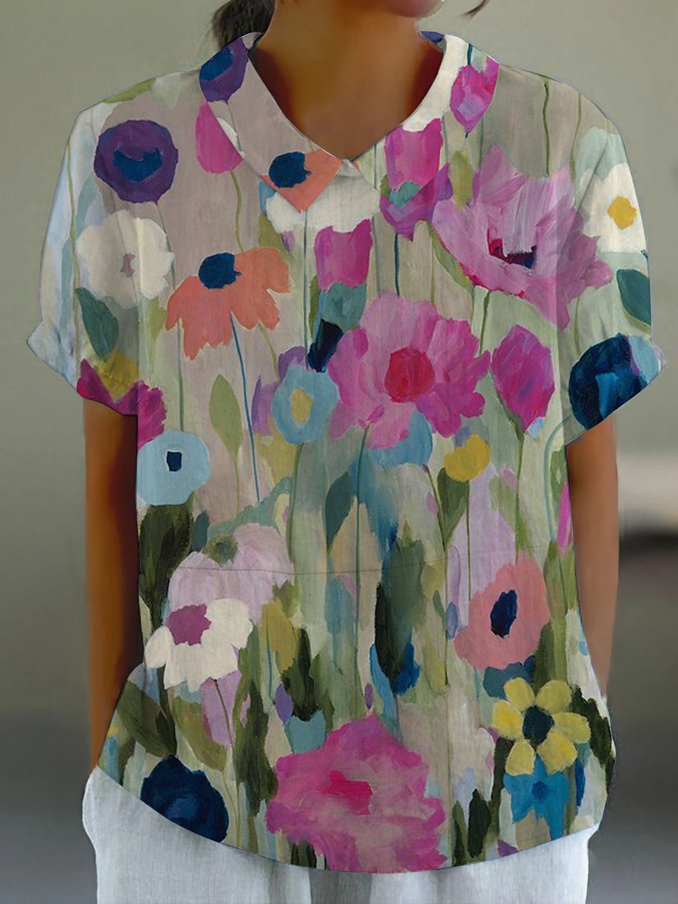 Women's Colorful Spring Floral Garden Printed Casual Cotton And Linen Shirt