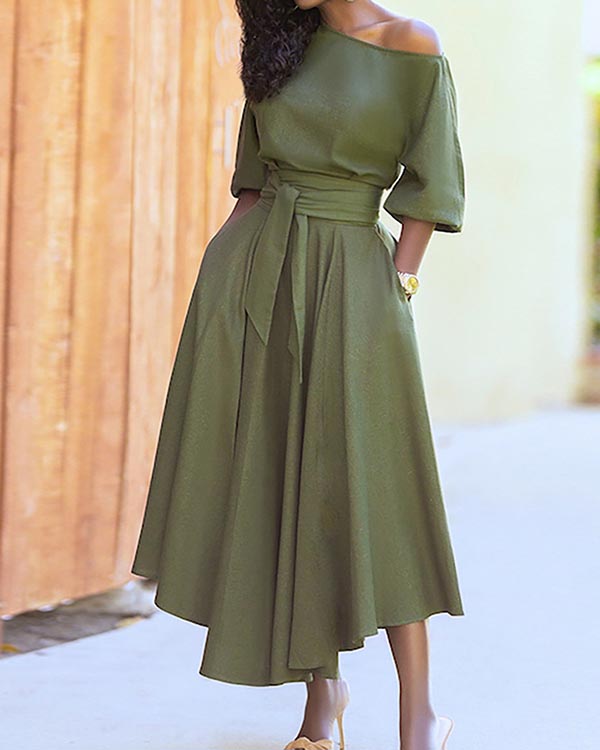 Temperament Solid Color Tie Waist Dress