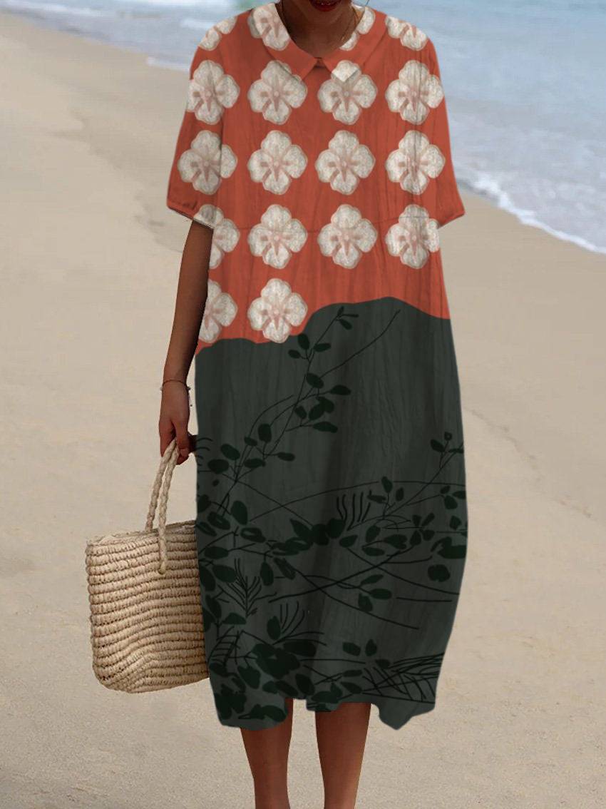 Women's Japanese Art Flower Print Pocket Linen Dress(Convertible Dress With Front And Back Option)