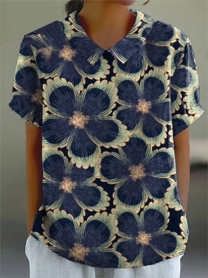 Women'S Vintage Floral Art Print Casual Shirt