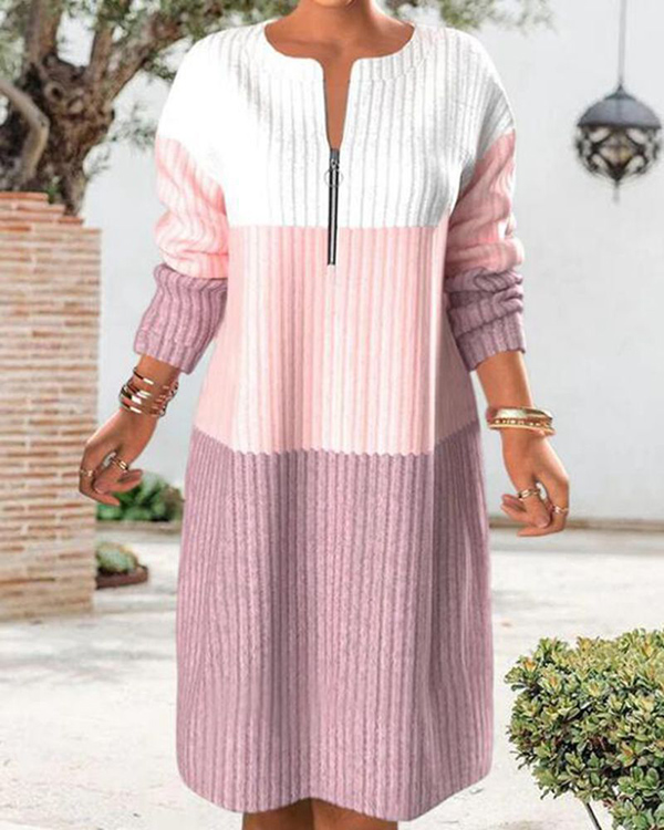 Contrast Paneled Long Sleeve Zip Knit Dress