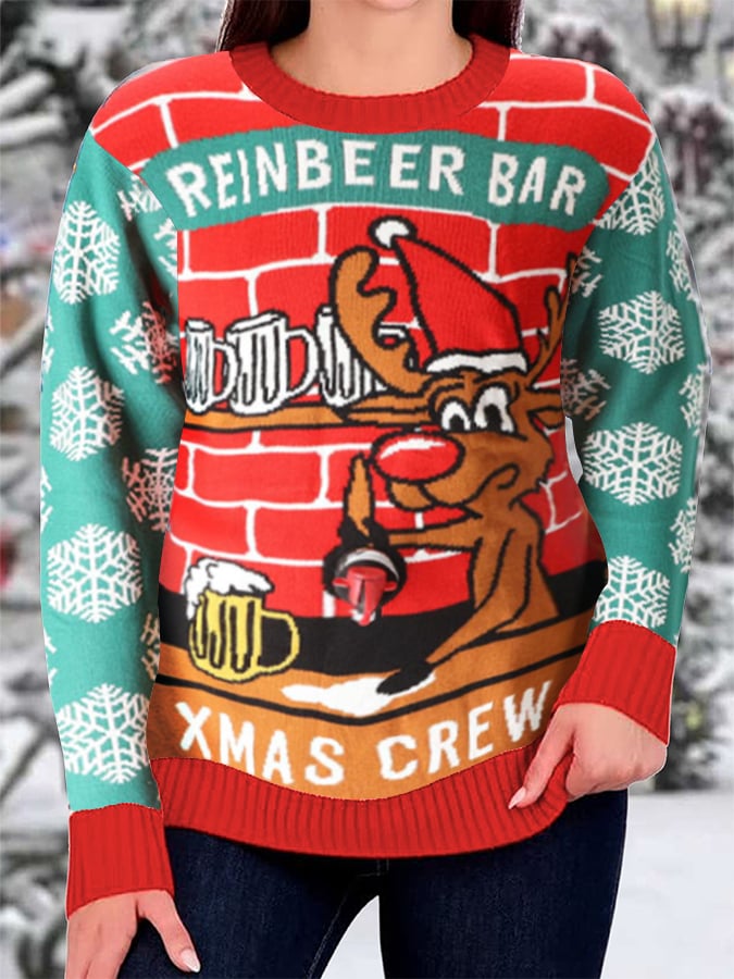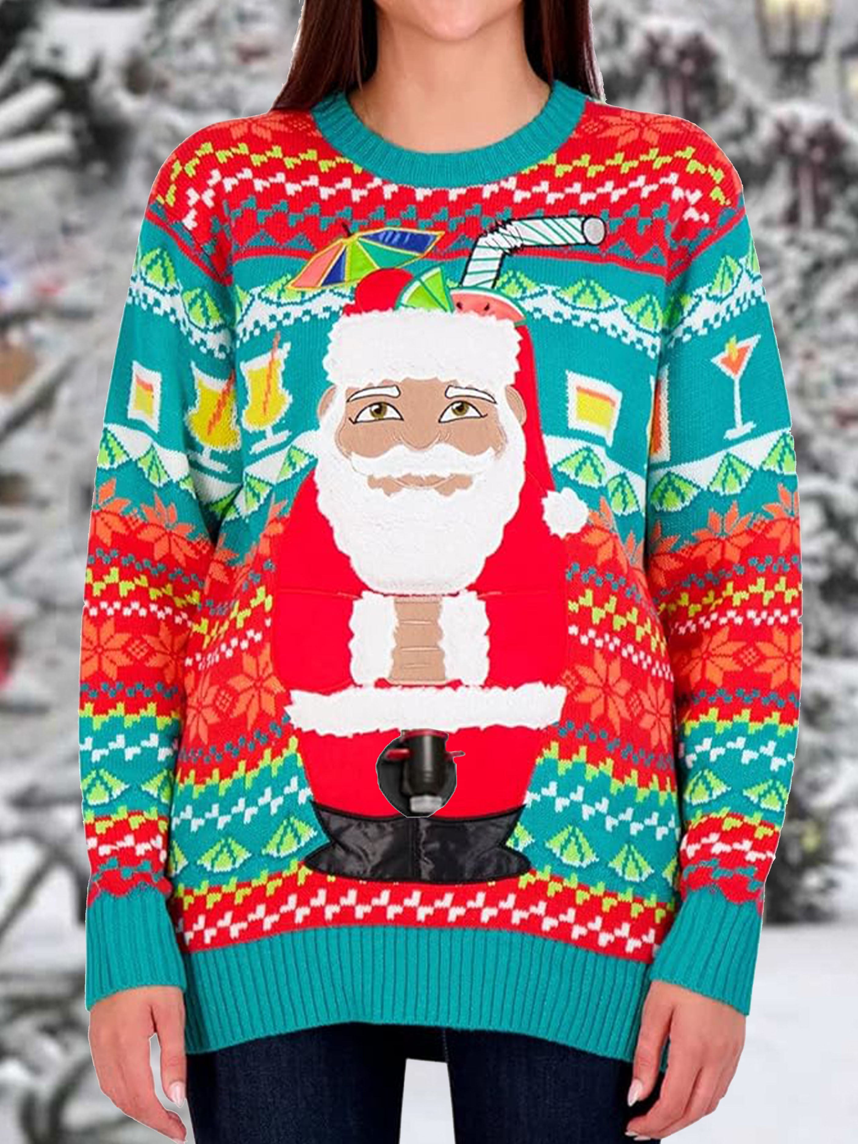 Women's Retro Santa Pees Juice Machine Ugly Christmas Sweater
