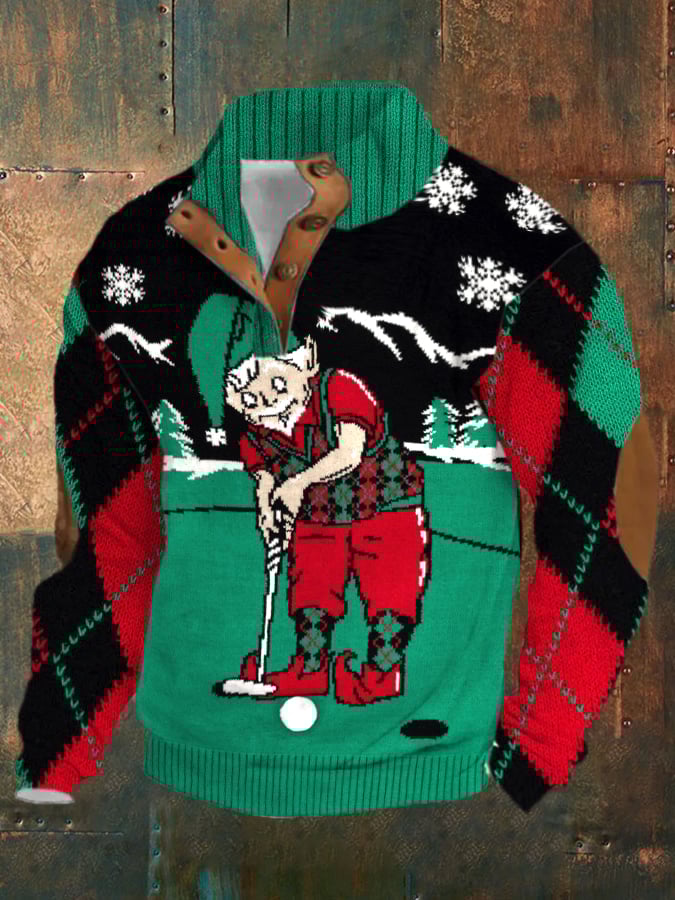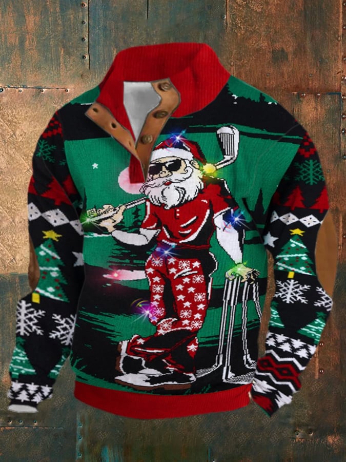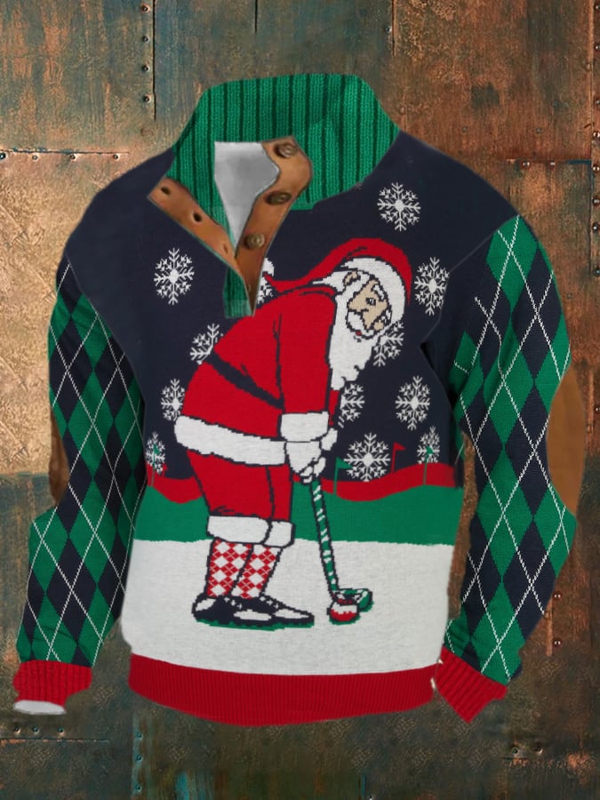Men'S Teeing Off Golfing Santa Ugly Christmas Sweater