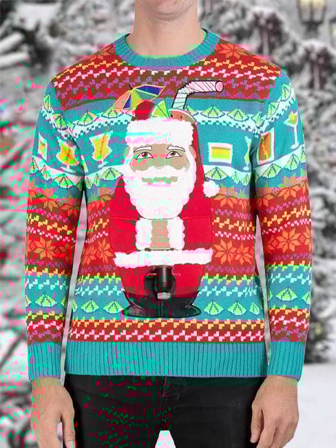 Men's Retro Funny Santa Juice Machine Ugly Christmas Sweater