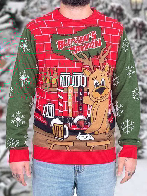 Men's Retro Funny Juice Beverage Dispenser Ugly Christmas Sweater