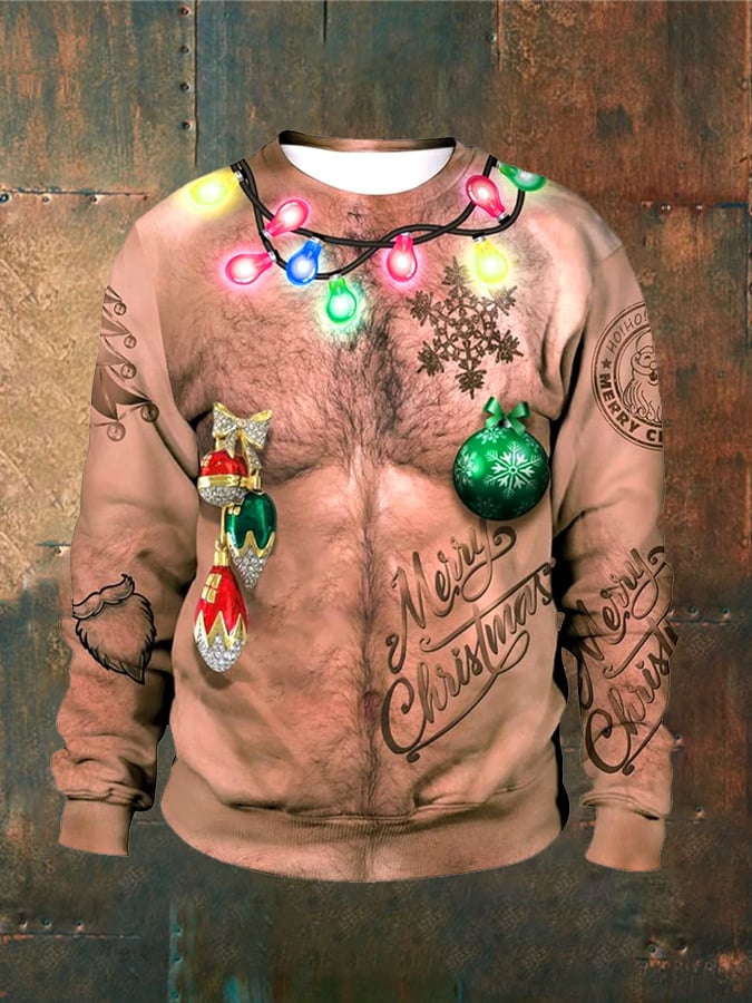 Mens Hairy Chest Tattoo Light Bulb Novelty Party Christmas Ugly Sweatshirt