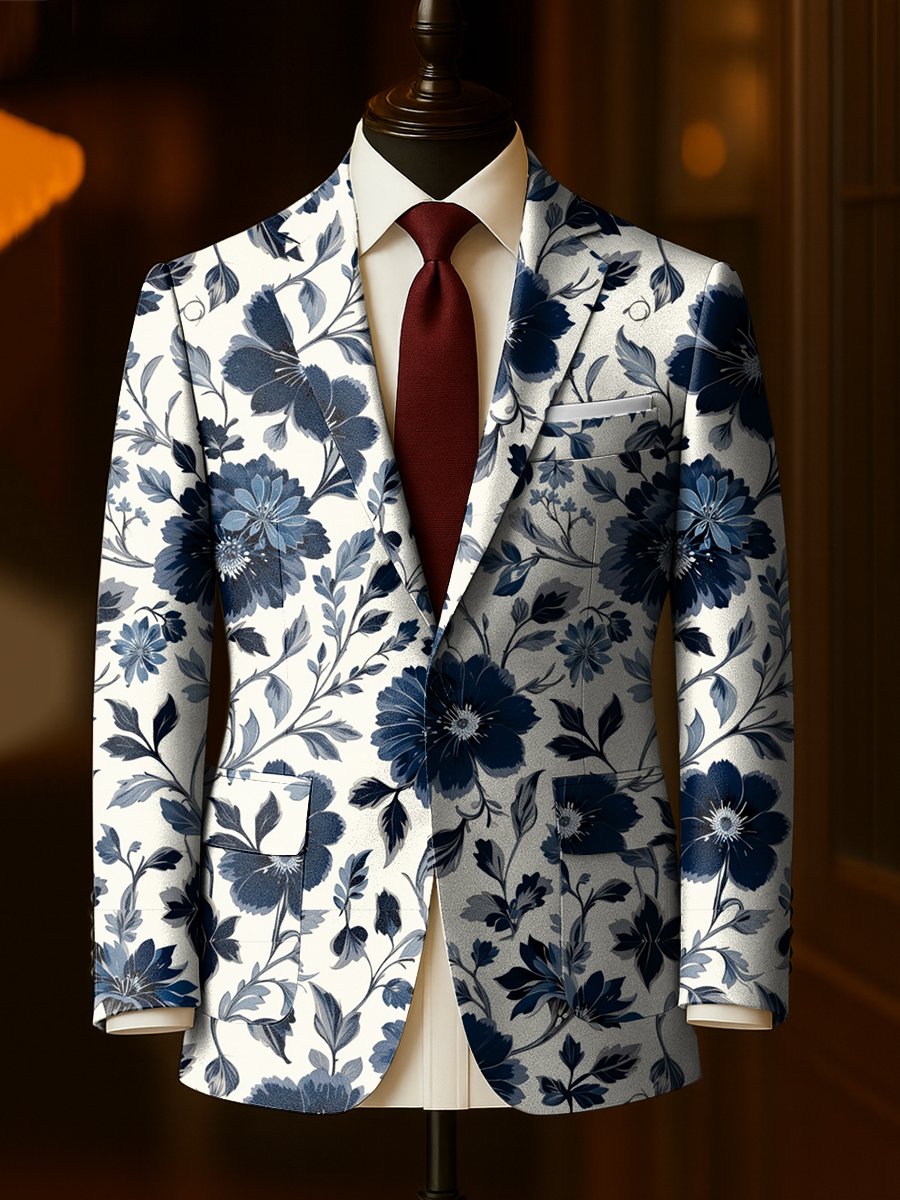 Men's Business Casual Floral Large Pocket Blazer