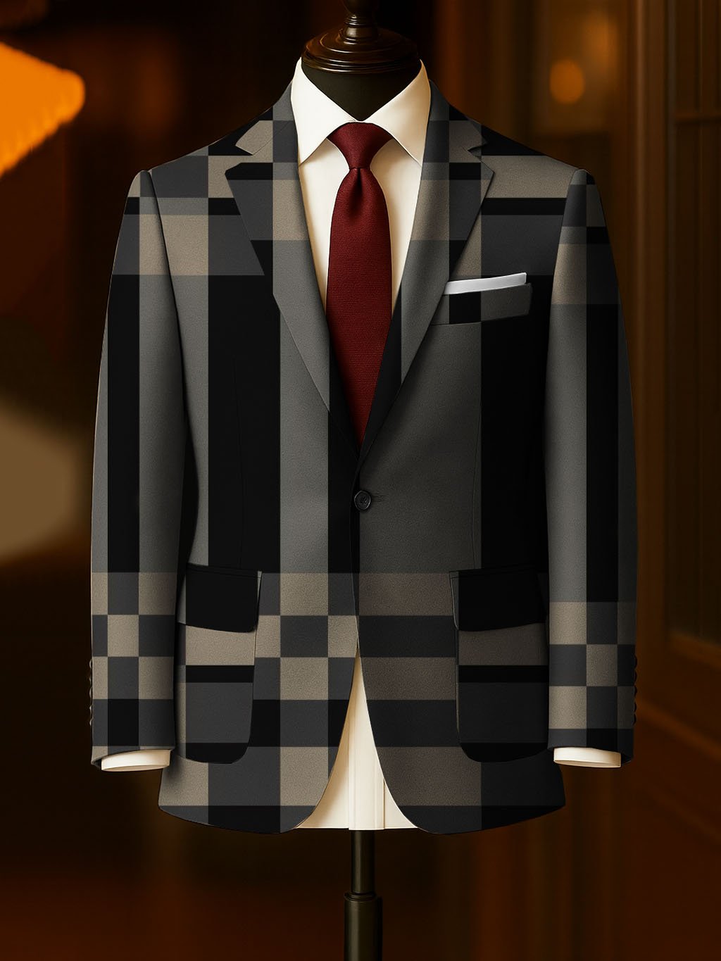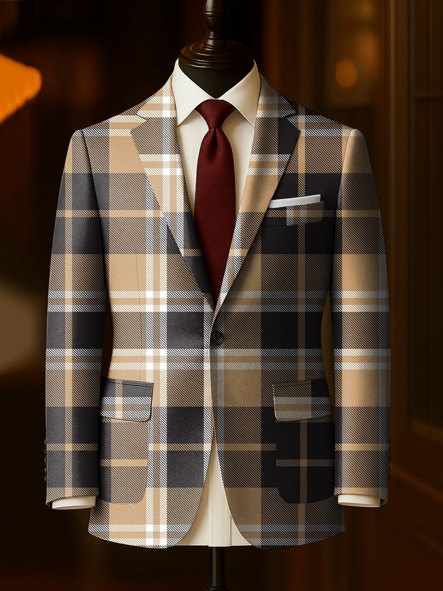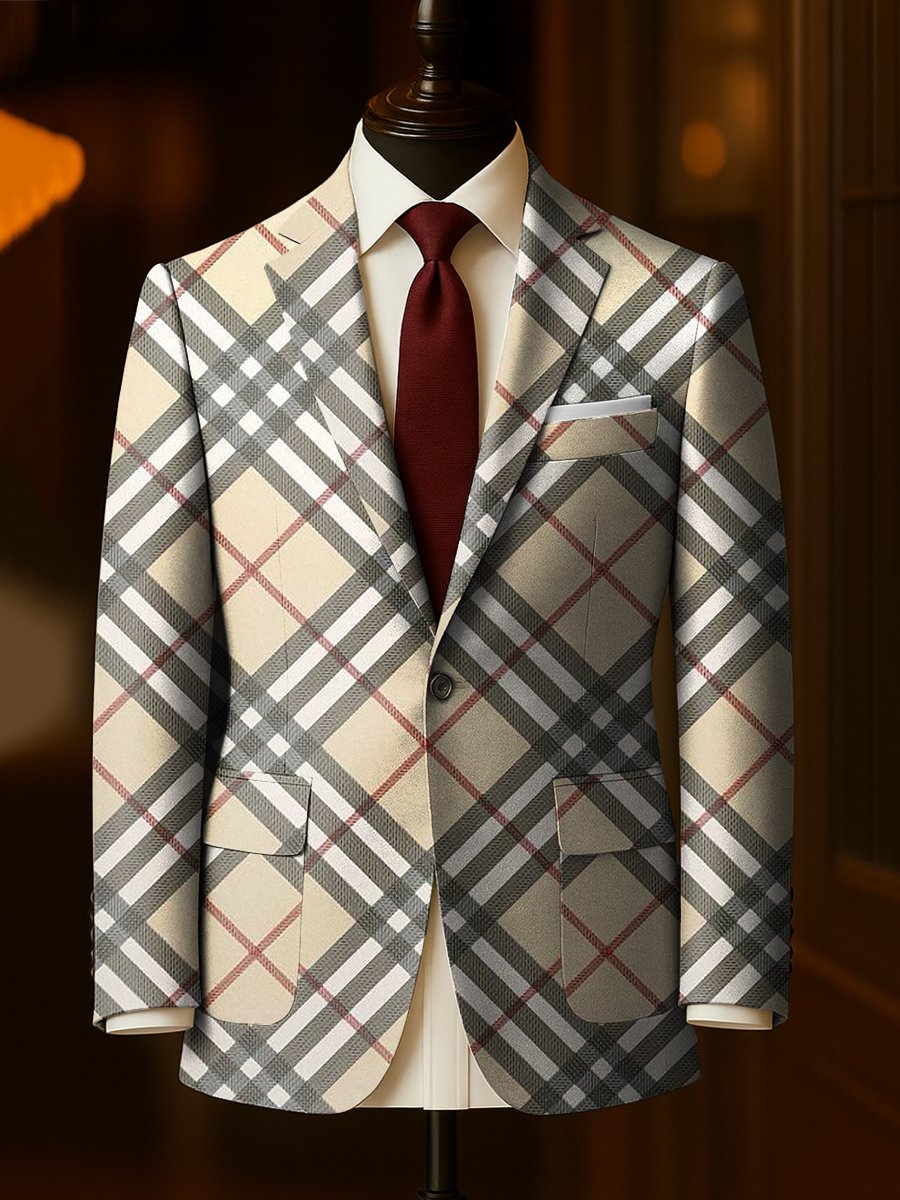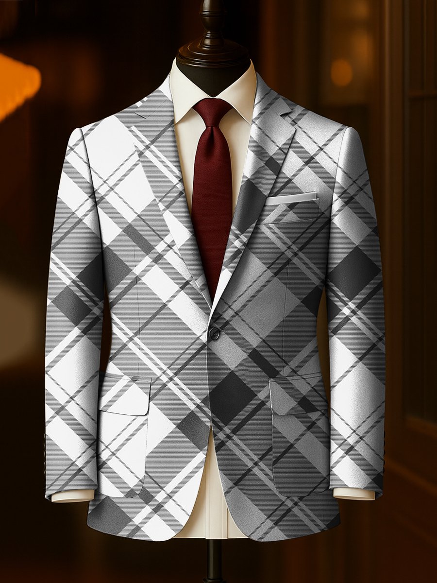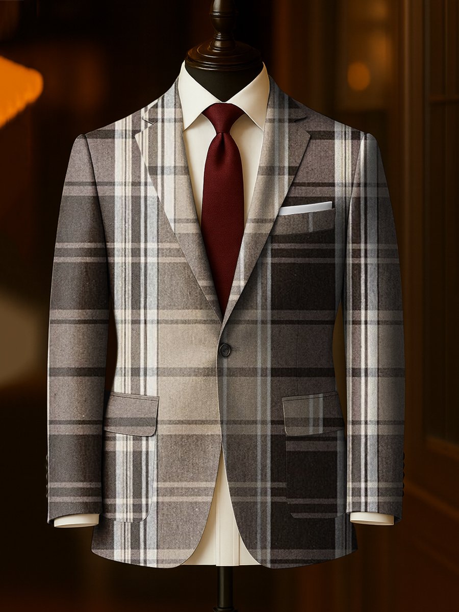 Men's Business Casual Plaid Large Pocket Blazer