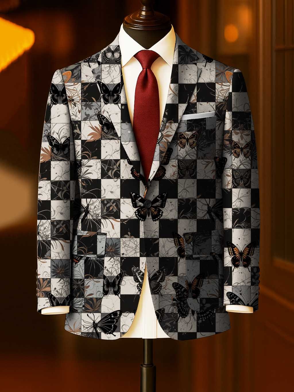Men's Business Casual Large Pocket Print Blazers