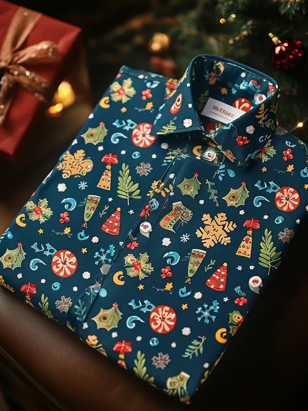 Buy 3 Get 15% OFF✨Men's Luxury Christmas Romantic Contrast Color Print Long Sleeve Shirt
