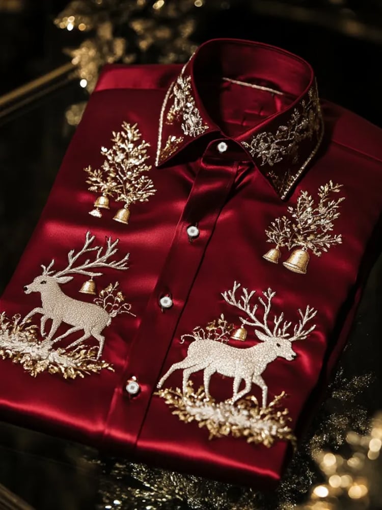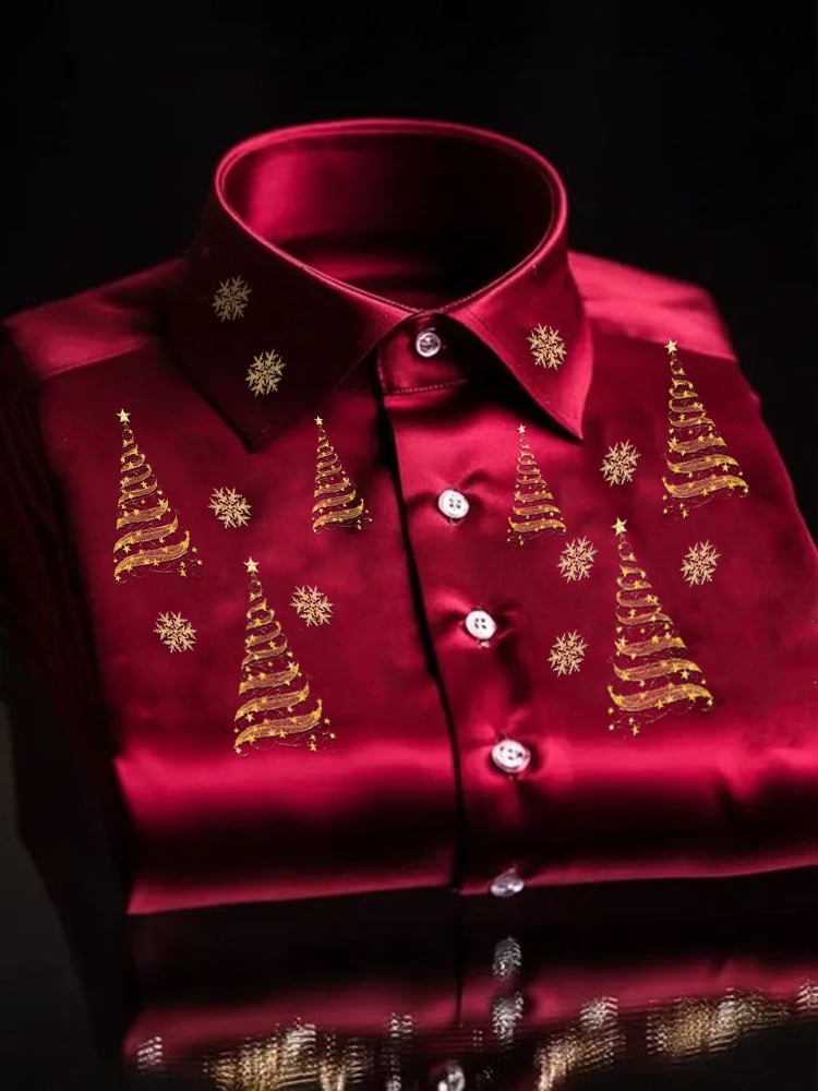 Men's Satin Luxury Christmas Long Sleeve Shirt