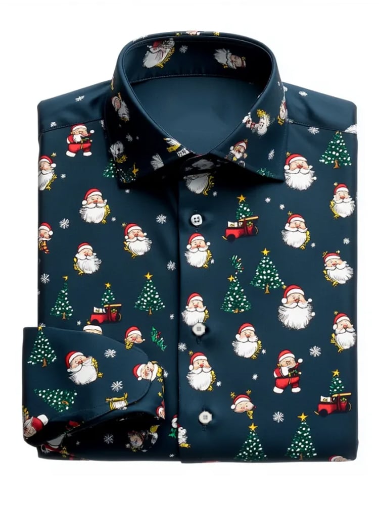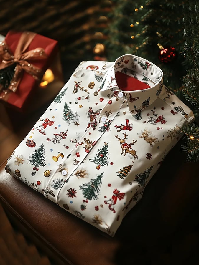 Men's Luxury Romantic Christmas Printed Long Sleeve Shirt