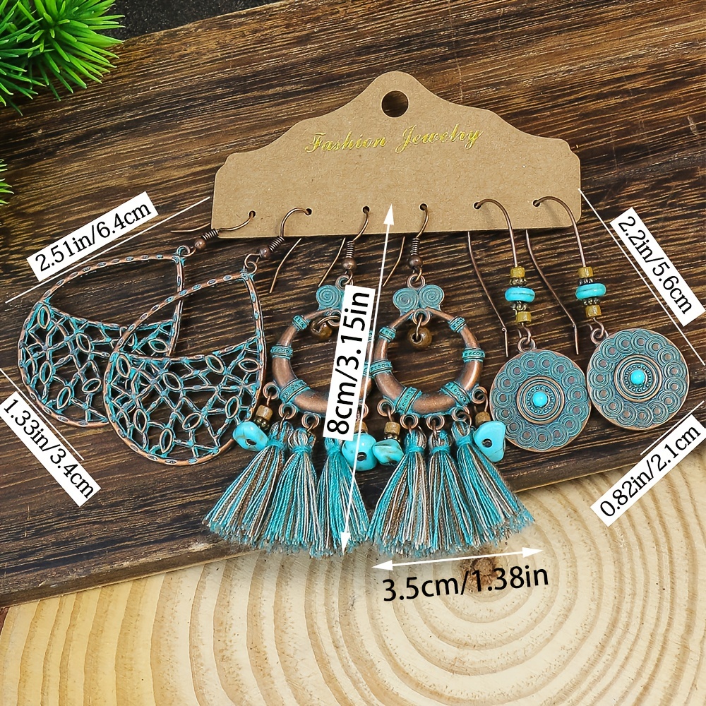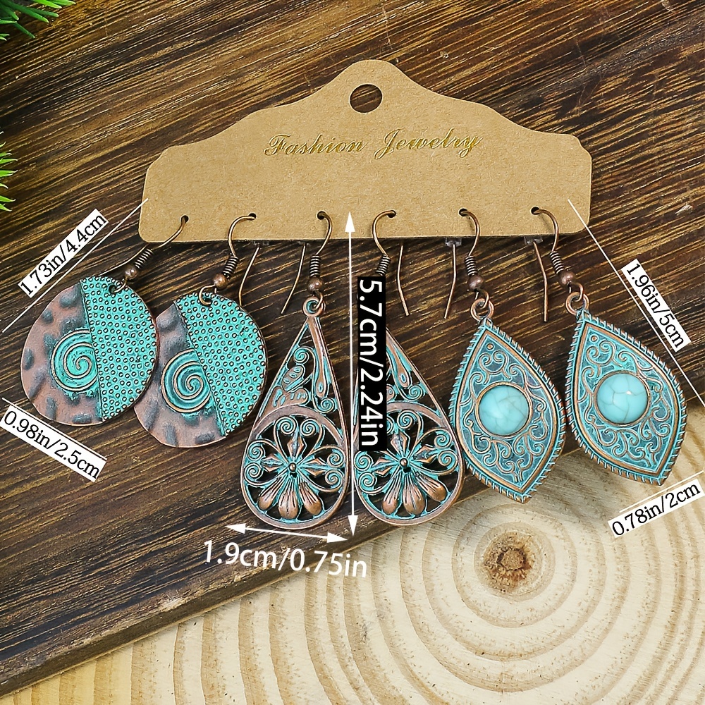 Unique Design: Geometric vintage folk charm earrings with a beautiful ancient copper finish Versatile: Matchy blue color makes it easy to pair with any outfit Value Pack: Comes with 3 pairs of earrings, perfect for daily wear or as a gift Lightweight: Comfortable to wear all day long without causing any discomfort