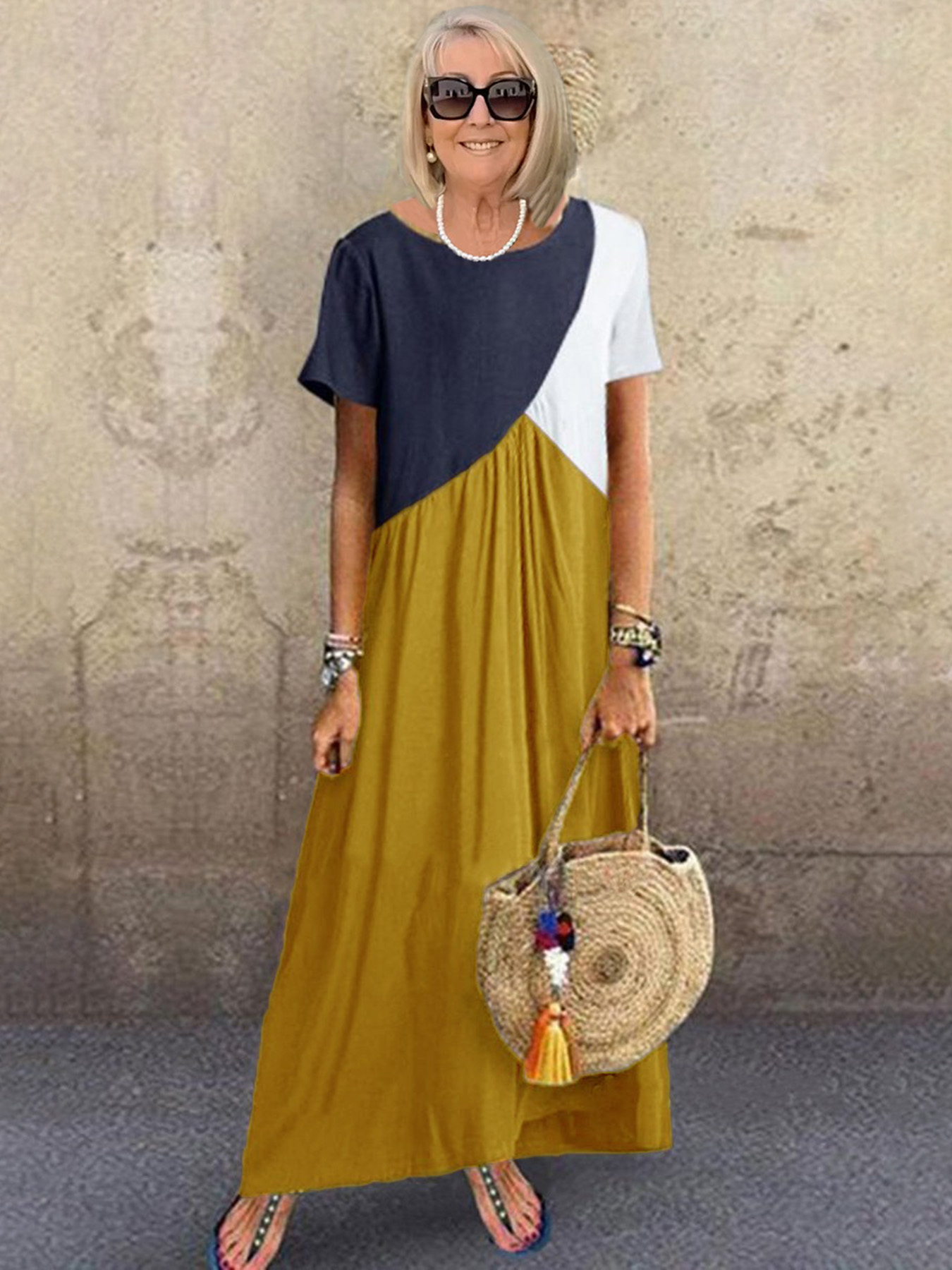 attern: PrintSkirt type: large hemWaist:Mid-waistCombination: SingleSkirt length: long skirtNeckline: round neckFashion elements: irregularStyle: BasicMaterial Name: Cotton BlendSleeve Type:Regular SleeveSleeve Length: Short SleeveSkirt Category:DressElement: Patchwork