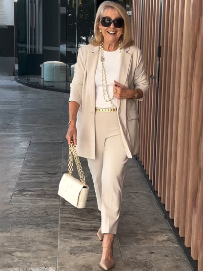 These gorgeous NEUTRAL STYLES are an absolute staple in my wardrobe and they have definitely stood the test of time. The relaxed fit creates that EASY ELEGANT look that is so comfy and will take me through from DESK to DINNER. A touch of GOLD on the ACCESSORIES adds a little extra pizzazz.