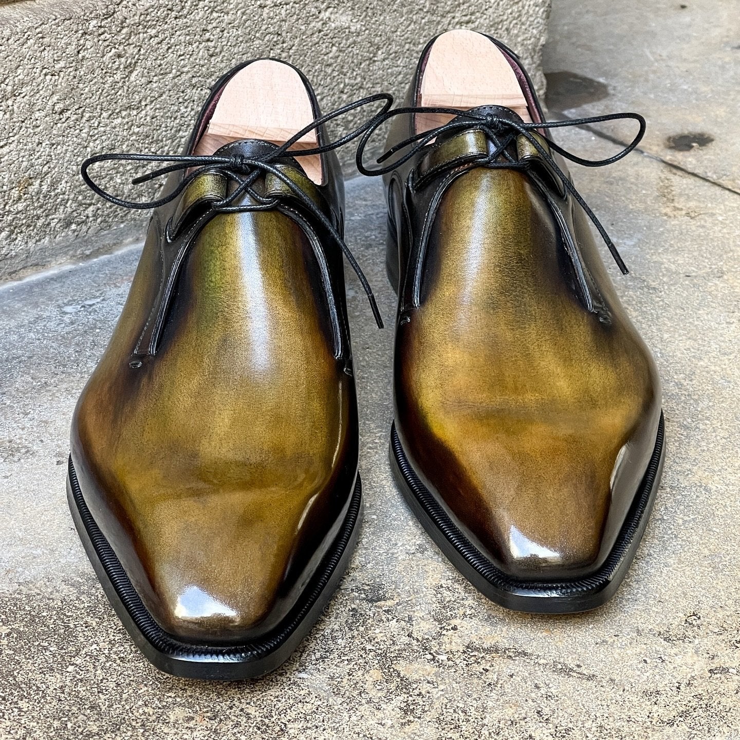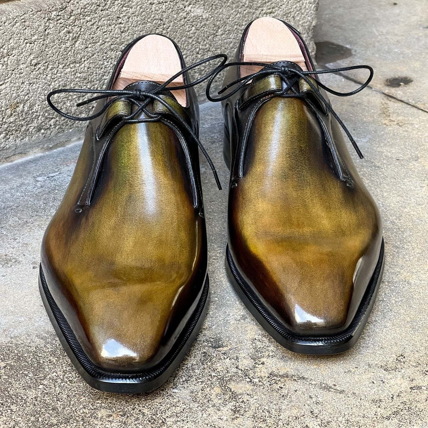 Each of the products listed on Lockandloves are 100% handmade. We use the original European leather handcrafting techniques to ensure excellence in each of our products. They are hand-lasted, hand sewn and hand finished for that unique final product. Since our products are made in small batches and not mass produced, each batch will have a small deviation in color and hue from the last one. This is considered and regarded as the unique character of the shoes and should not be considered a fault.