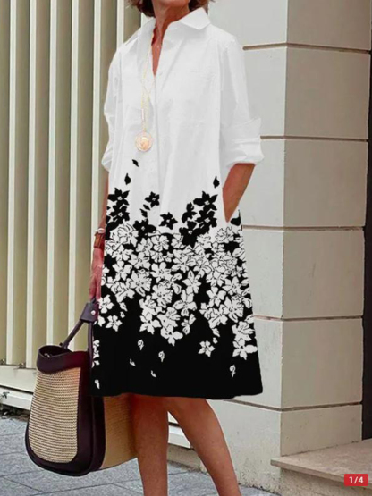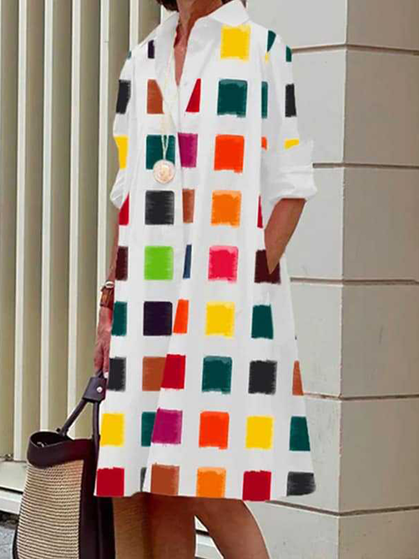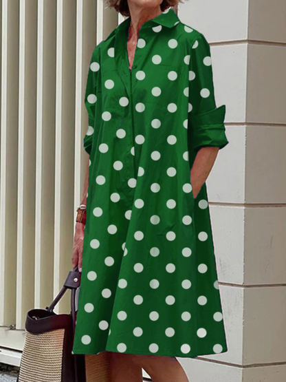 Holiday Bohemian Maxi DressDot Printed Mid-Length Long Sleeve Shirt Dress for Women