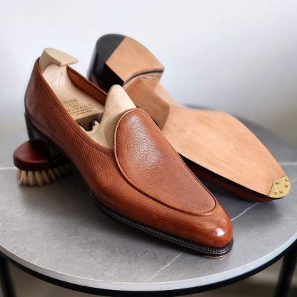 Each of the products listed on Lockandloves are 100% handmade. We use the original European leather handcrafting techniques to ensure excellence in each of our products. They are hand-lasted, hand sewn and hand finished for that unique final product. Since our products are made in small batches and not mass produced, each batch will have a small deviation in color and hue from the last one. This is considered and regarded as the unique character of the shoes and should not be considered a fault.