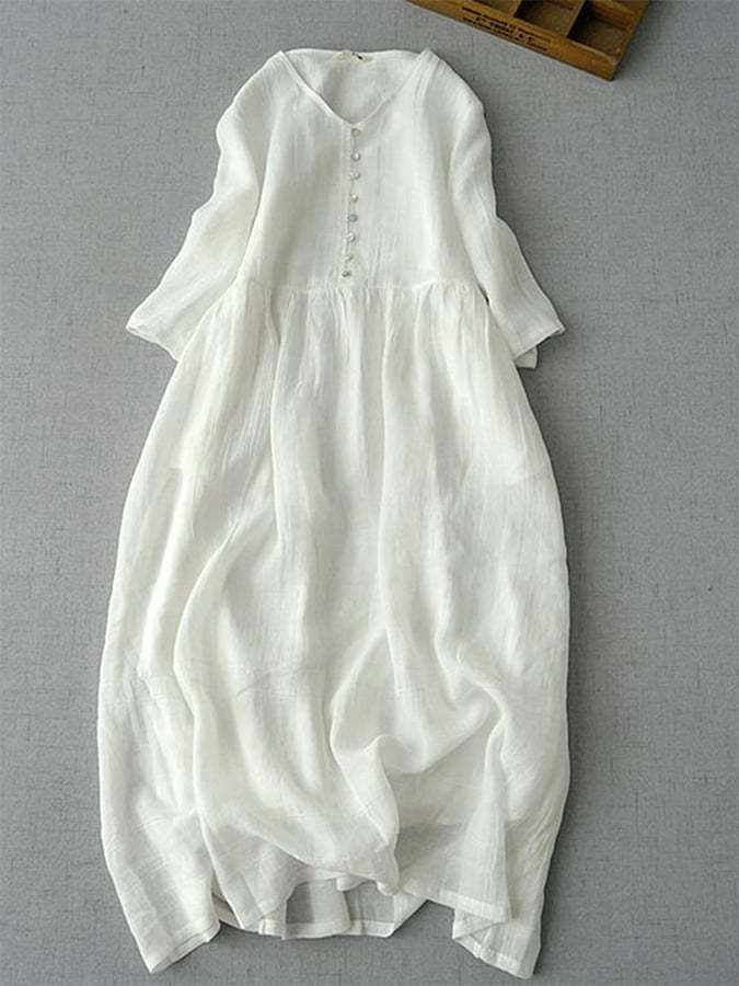 Literary And Retro Cotton And Linen V-neck Half-sleeved Dress