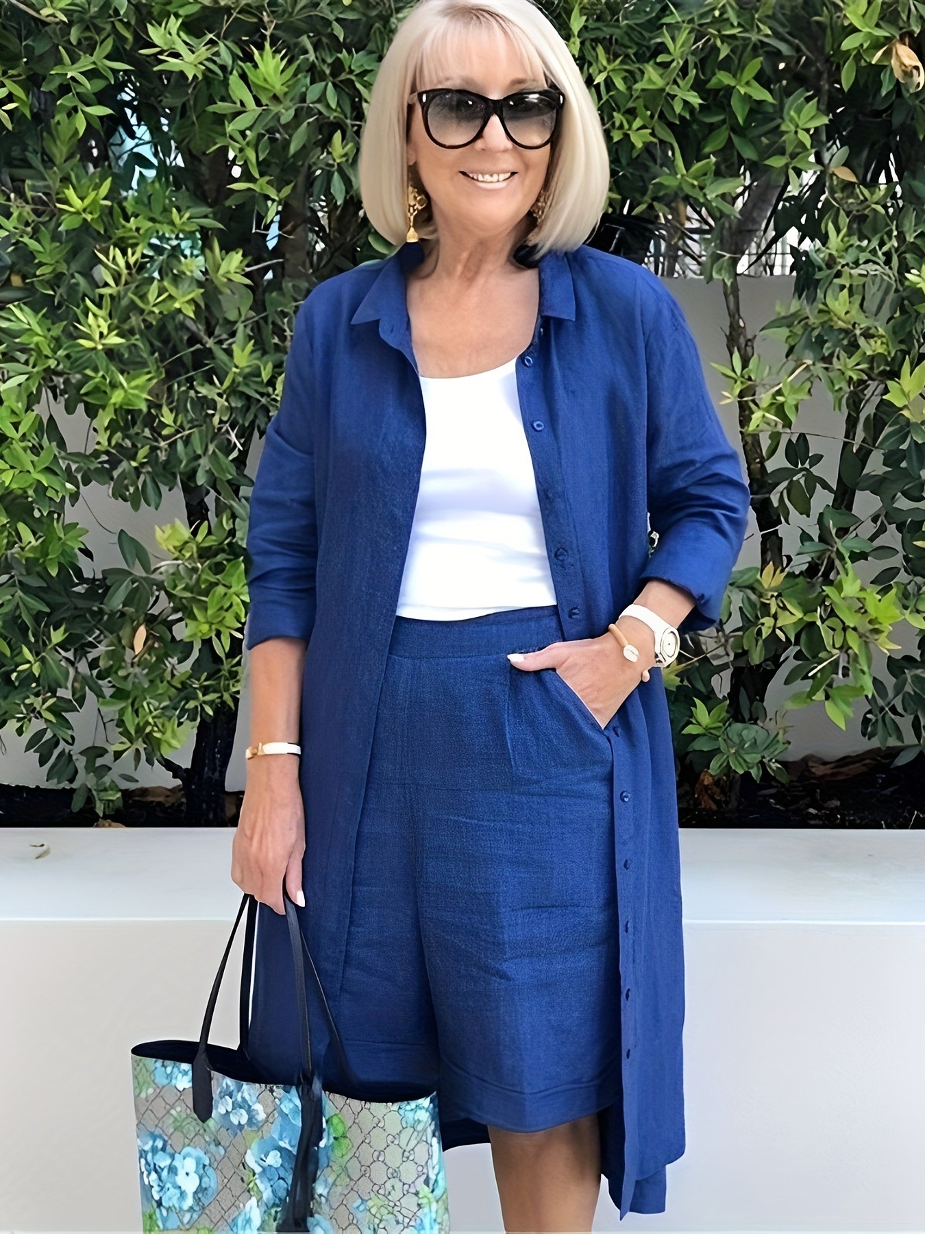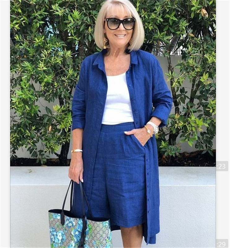 Long Cotton Linen Shirt Fashionable Fifth Pants Suit