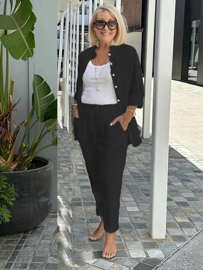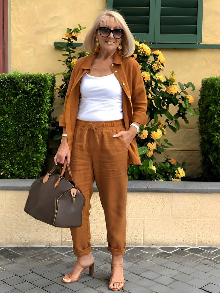 Neutral colour tones always look fabulous when you add a little WHITE. A rattan tote and tan heels complete the look with style. I have added one of my favourite NECKLACES featuring a gold anchor style chain and a gorgeous BAROQUE PEARL to elevate this chic look.⠀