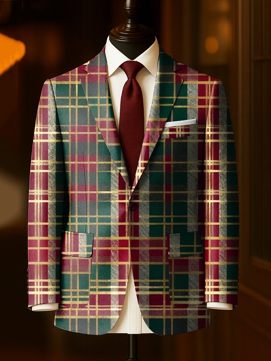 Men's Business Casual Large Pocket Plaid Blazers