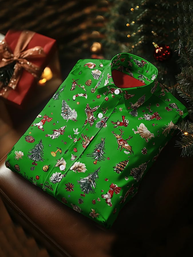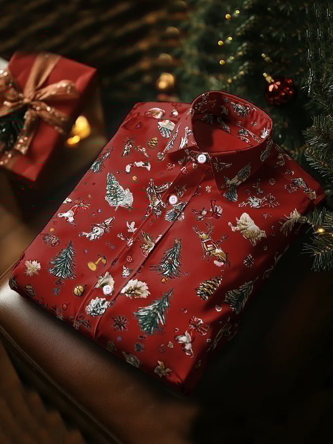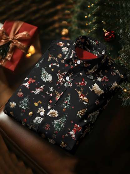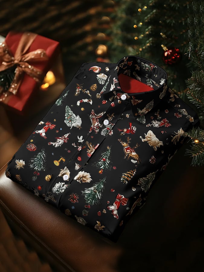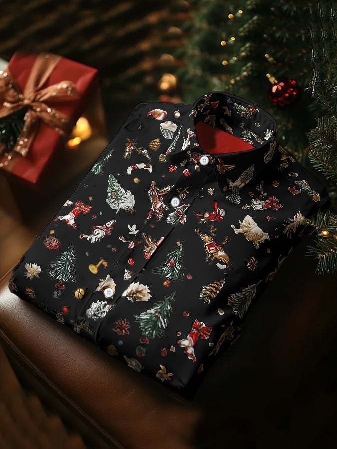 Men's Luxury Christmas Contrast Color Print Long Sleeve Shirt