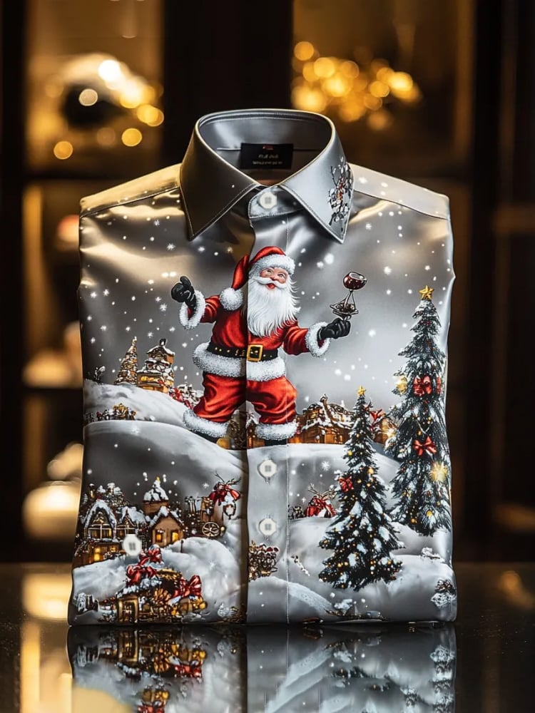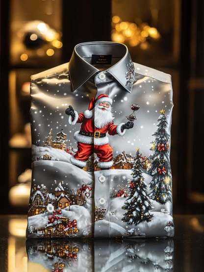Men's Luxury Romantic Christmas Printed Long Sleeve Shirt