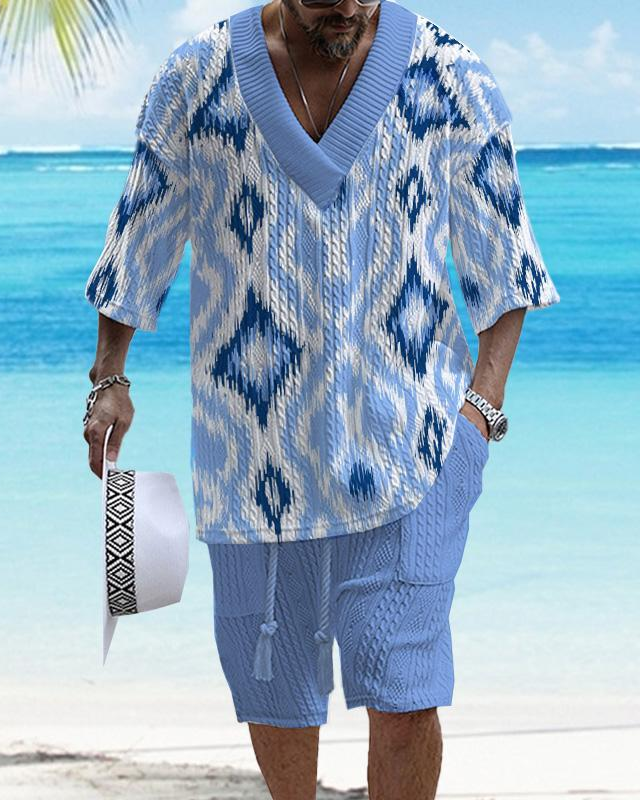 Occasion: Leisure, VacationSeason: Spring, SummerElasticity: Low ElasticitySleeve Length: Short SleeveSuitable Type:LooseFabric: Polyester Fiber, CottonNeckline: V-neck