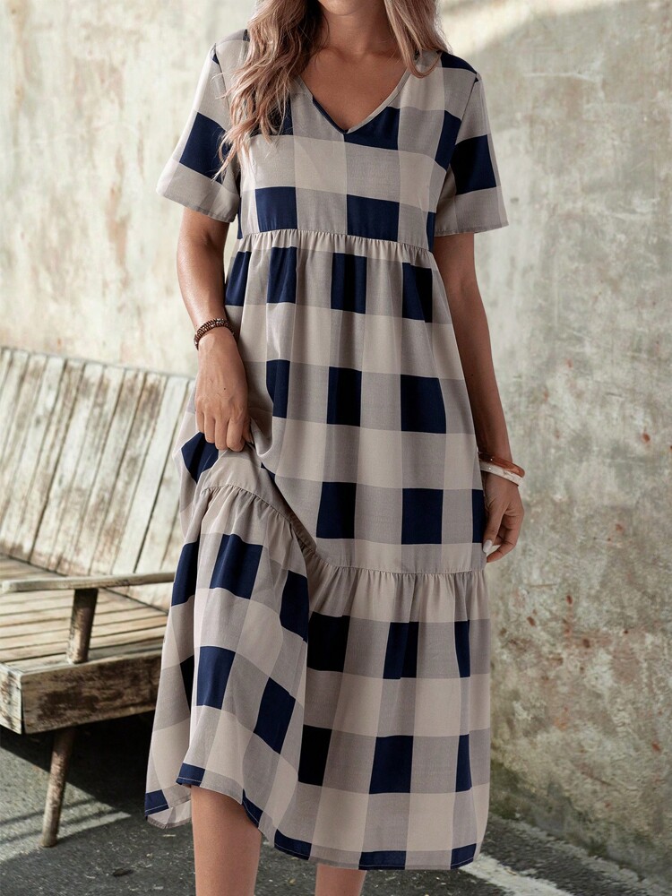 Fabric name: cotton blendStyle type: ElegantSkirt length: long skirtCollar type: v-neckSleeve length: short sleeveSkirt Category: DressStyle: Elegant style