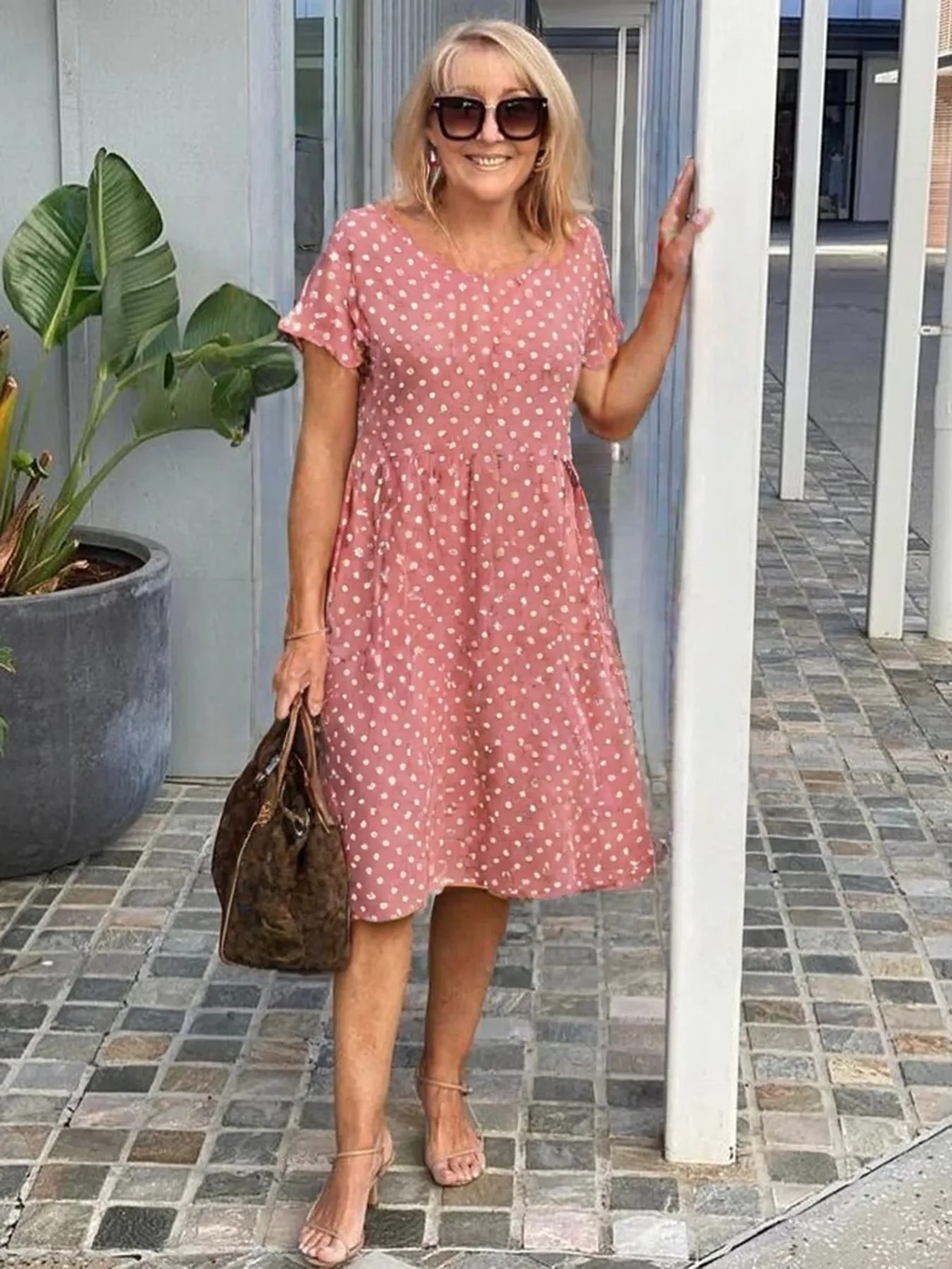 Polka Dot round Neck Short Sleeve Casual Four-Sided Stretch Dress