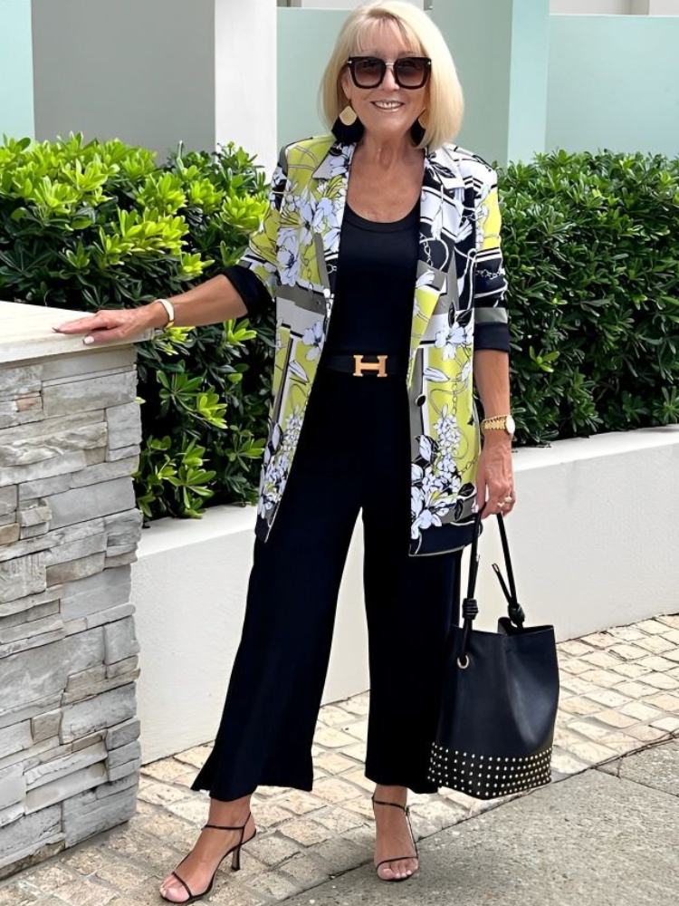 A great addition to any wardrobe is a gorgeous STATEMENT BLAZER and this one ticks all the boxes for us. Adding a SPLASH OF COLOUR to total BLACK, this look is elegant and very stylish. Perfect styles for travelling, going out for dinner or even heading to the office.