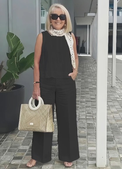 Sleeveless Solid Cotton and Linen Set for Breathable and Comfortable Holiday Two-Piece Set