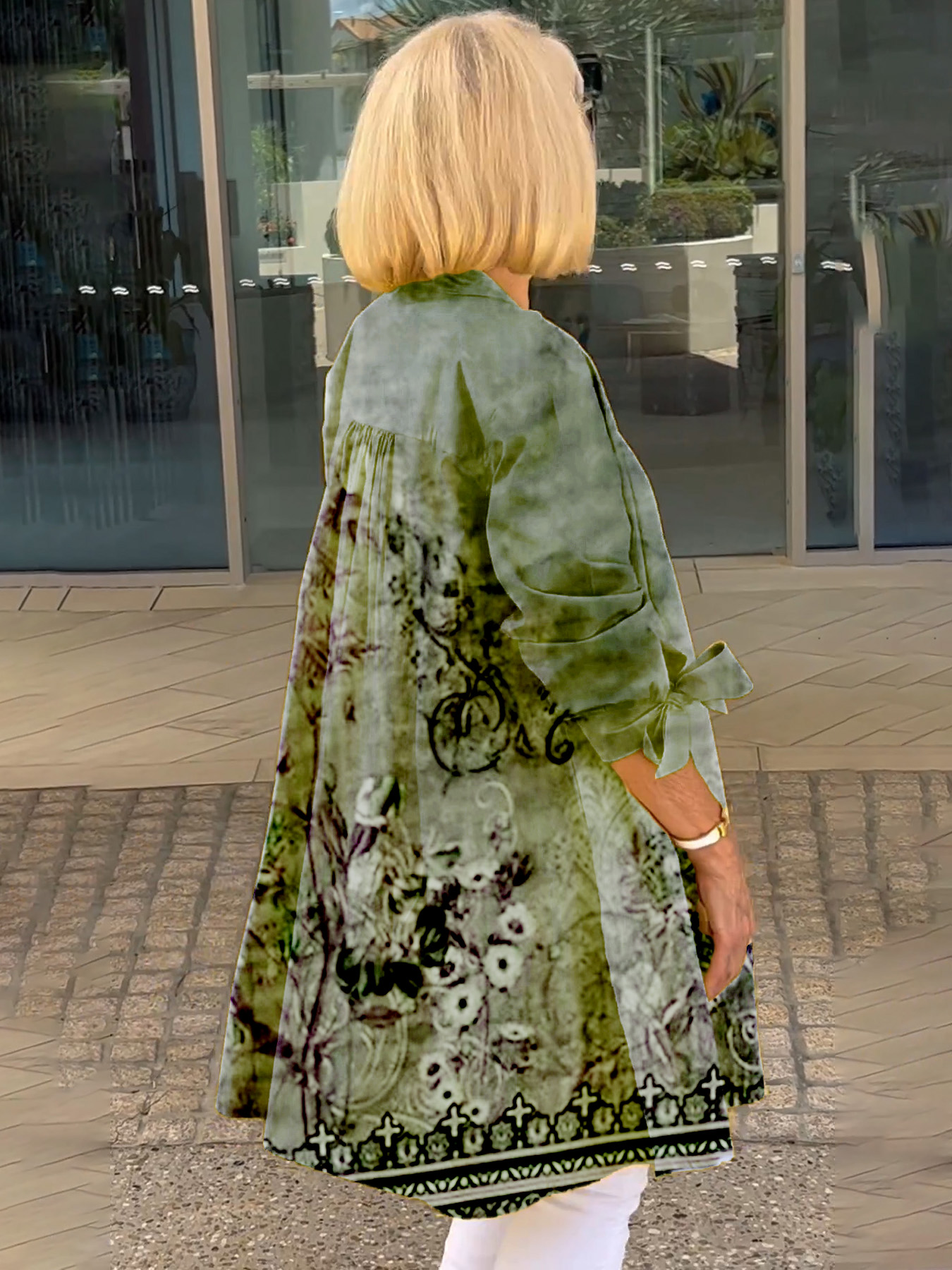 THICK COTTON JACKET BOW Sleeves REMOVABLE Autumn New Style Women Printing Jacket Swing Shap Flattering Gathered Yolk At The Back