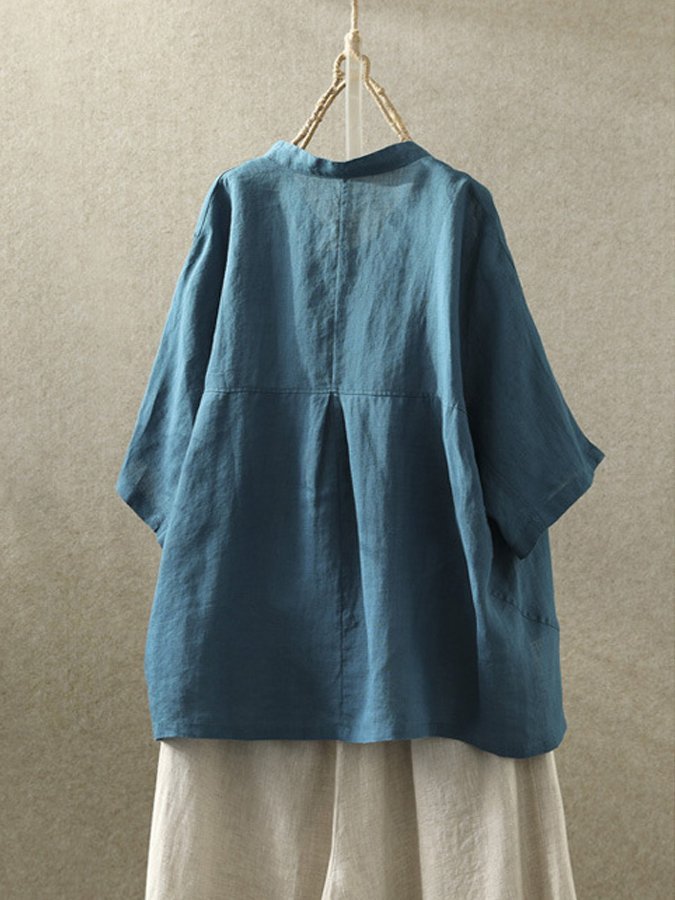 Women's Casual Loose Cotton And Linen Button Shirt