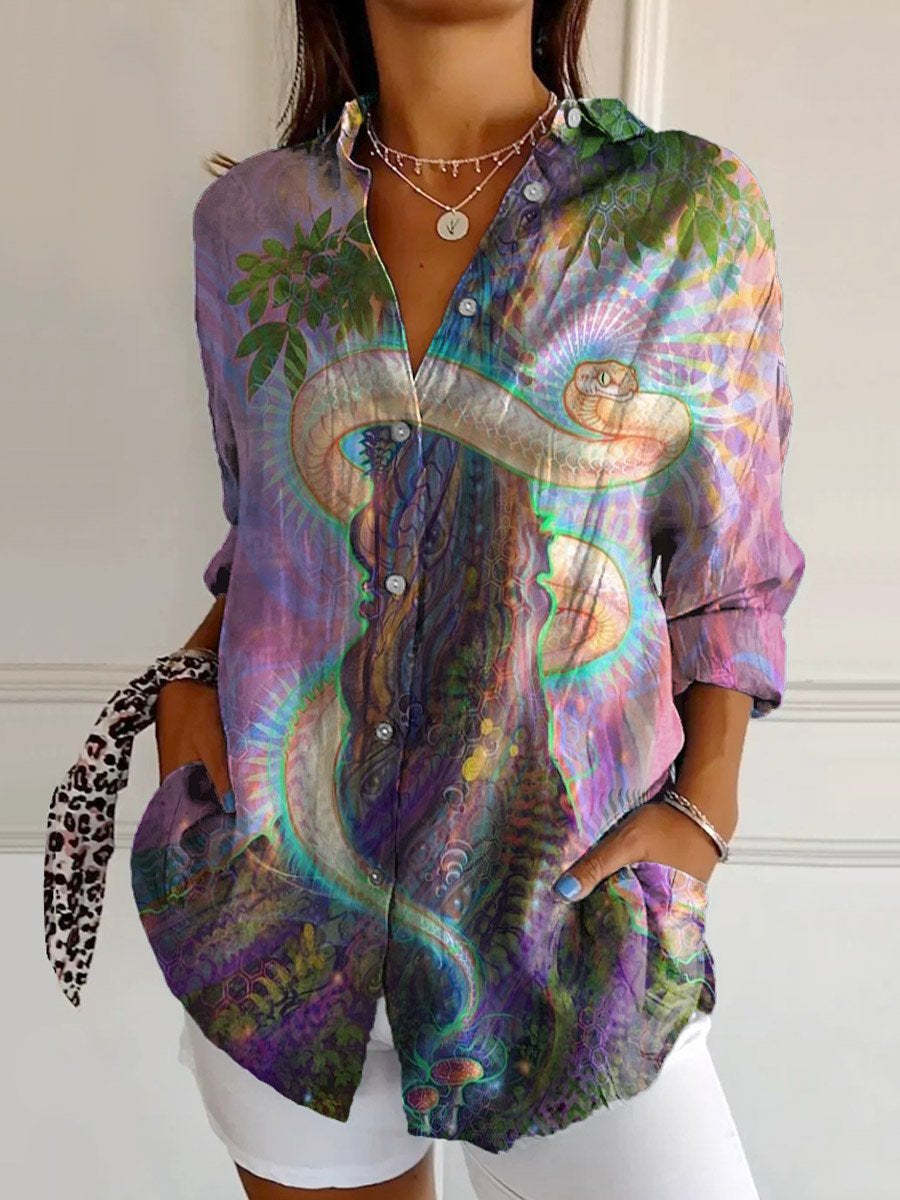 Women's Colorful Fantasy Art Print Casual Cotton Shirt