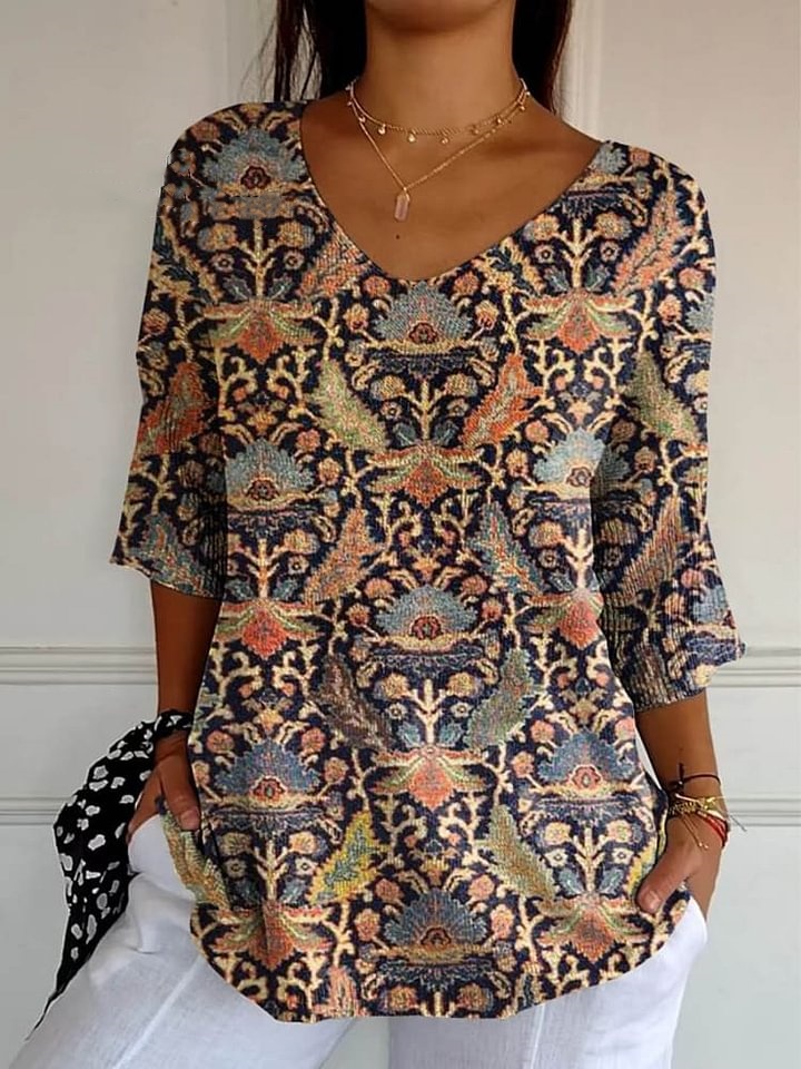 Women's Lovely Floral Art Print Casual Pullover Knit