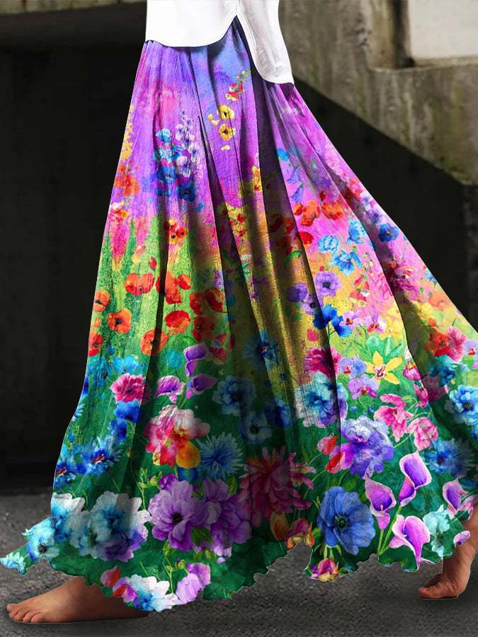 Women's Retro Floral Loose Casual Skirt