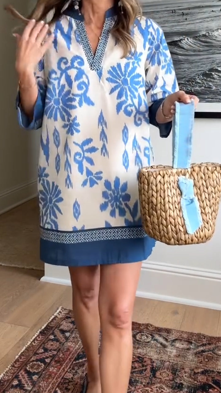 Women's V-neck Printed Loose Casual Dress