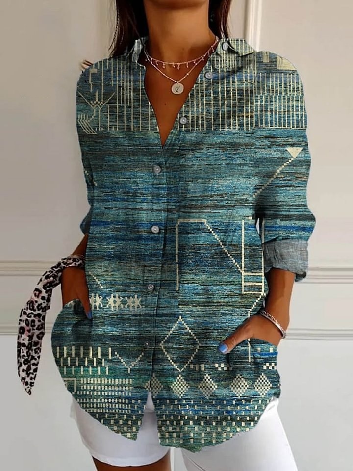 Women's Vintage Ethnic Pattern Art Print Casual Cotton Shirt