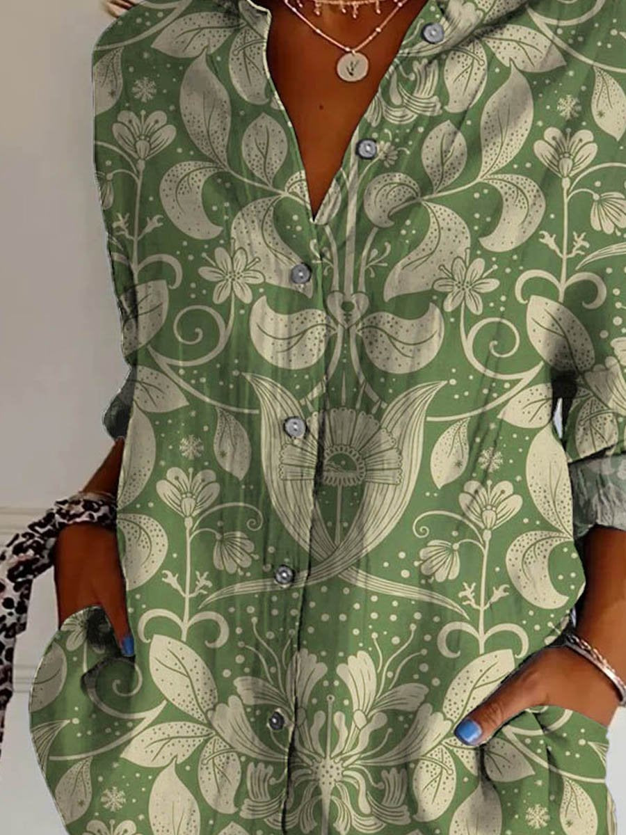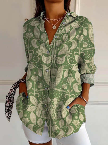 Women's Vintage Lovely Floral Art Print Casual Cotton Shirt